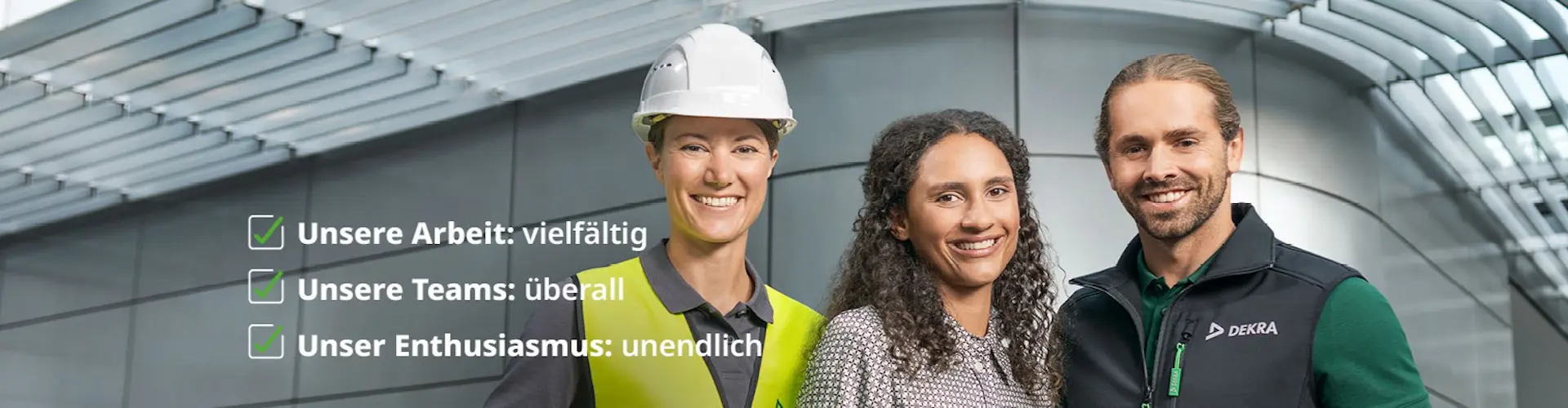 Darüber hinaus bietet die DEKRA Automobil flächendeckend eine Vielfalt an weiteren automobilen und industriellen Dienstleistungen – von Schadengutachten über die Maschinen- und Anlagensicherheit bis hin zum Arbeits-, Umwelt- und Gesundheitsschutz. Wollen auch Sie unsere Zukunft sicherer und nachhaltiger machen?